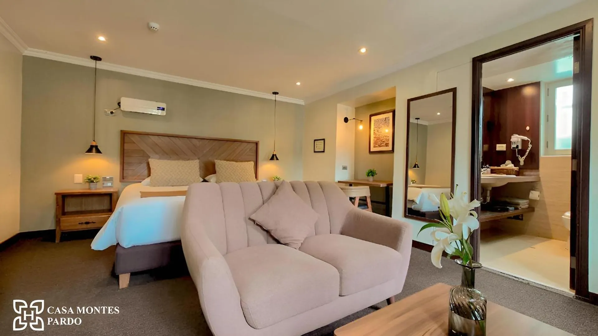 Die Zimmer im Hotel Casa Montes Pardo verfügen über einen Patio und einen Essbereich sowie ein Bügeleisen/Bügelbrett und eine Klimaanlage für Ihren Komfort. Neben einer getrennten Toilette und einer Dusche zählen auch ein Haartrockner und Badelaken zur Ausstattung des Badezimmers.